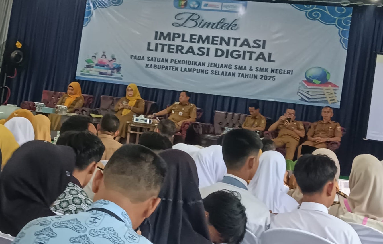 Beritapro.net, Lampung Selatan,- Dinas Pendidikan dan Kebudayaan Provinsi Lampung menggelar Bimbingan Teknis (Bimtek) Implementasi Literasi Digital bagi satuan pendidikan jenjang SMA dan SMK Negeri se-Kabupaten Lampung Selatan, Selasa (7/10/2025).